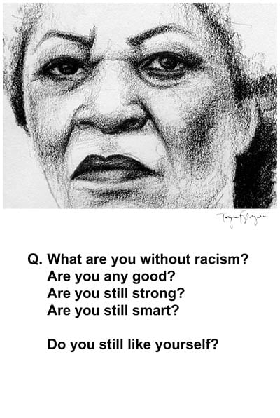 "Who are you without racism? Are you any good? Are you still strong? Are you still smart? Do you still like yourself?... If you can only be tall because somebody's on their knees, you have a serious problem. And my feeling is, white people, have a very, very, serious problem." - Toni Morrison